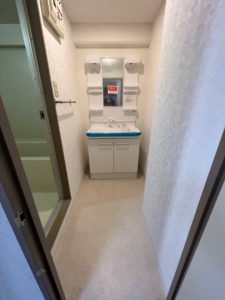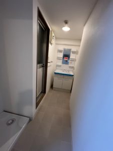 洗濯機置場を浴室の入り口横に配置変更したことで